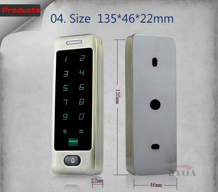 5YOA Waterproof Metal Rfid Access Control Keypad With 1000 Users+ 10 Key Fobs For RFID Door Access Control System